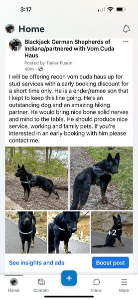 message mthcmjy about this ad I have two very nice studs that I am doing early bookings on for a short period of time both are solid dogs and will bring something to the table when breeding to either of them. Price for booking for each is 800. Stud fee is due at time of breeding a brucellosis test must be done by a vet and female must be clear at time of breeding. If you are traveling from father away a progesterone test should be done to make sure your female is ready to be bred. |