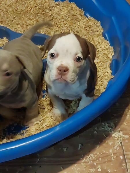 Piebald Chocolate Tri Female Abkc reg , utd on shots and dewormer 3k