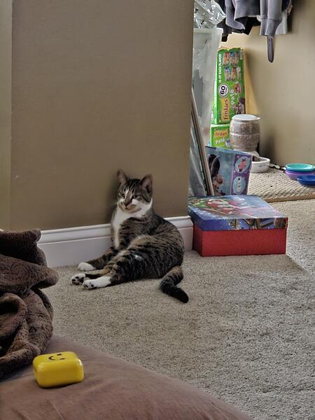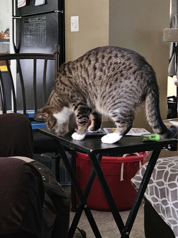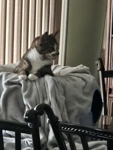 4 year old male cat. Nutered. Vaccines are up to date. Friendly, lives with other cats, a dog and kids.
