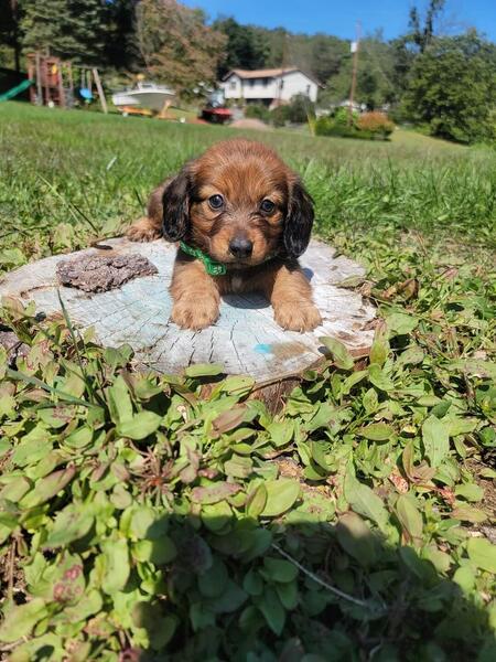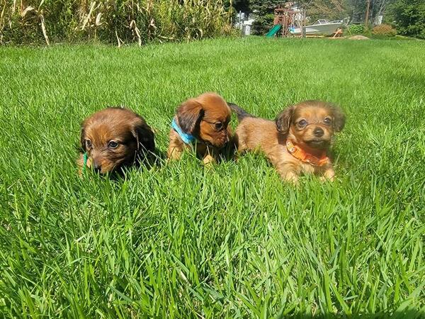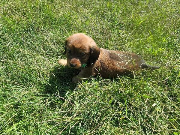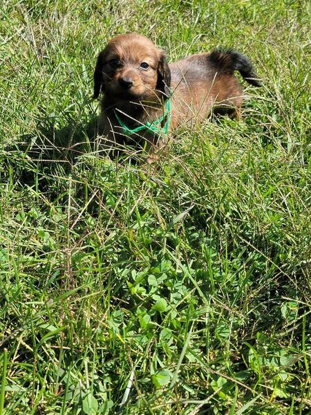 We have 2 male shaded red Dachshund males available Oct 10 in pa Text 570 617 6394