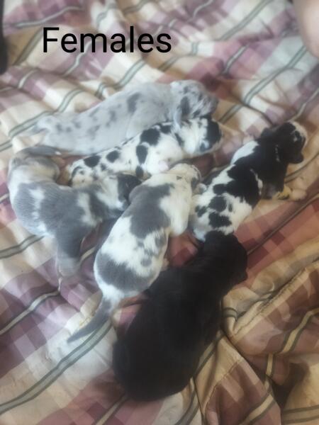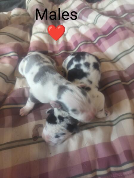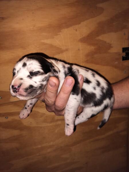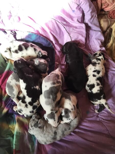 message rachel1 about this ad AKC registered Great Dane puppies available! Accepting deposits now. What your puppy will come with: AKC registered papers A folder of lots of information A copy of our signed puppy contract A copy of our health guarantee Copies of mom & dads pedigrees microchipped & microchip information vet records of first and/or second round of DHPP vx wormed at 2,4,6,8,10 weeks old newborn pictures of your pup a goody bag to go home food to transition slowly over Lifetime breeder support Gunner is our sire of this litter, both of his parents have been health tested and clear(can provide paperwork Gunner is still getting all of his OFA testing done as hes only 2 years old, he has been health tested and cleared. Gunner currently weighs around 150 Dixie, our dam of this litter, her sire was health tested and cleared. Unfortunately, I do not have copies of this paperwork. Dixie is also still getting all of her OFA testing done as she is also only 2 years old. Dixie has started genetic health testing and is clear. This will be her second litter. She currently weighs around 140 Message us for more information. We are located in Galien, MI. Lucky Kennels Great Danes message rachel1 about this ad |