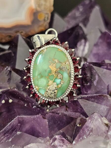 message atefeh about this ad Handmade 950 Jeweled Silver Pendant with Original Neyshabur (A City in Iran) Blue-Green Turquoise, Natural Red Garnet Inlay, Rhodium Plated. Approximate Weight: 8.68 Grams Approximate Dimensions: 25 mm*20 mm Price: 240 AUD Posting costs are the responsibility of the customer. |