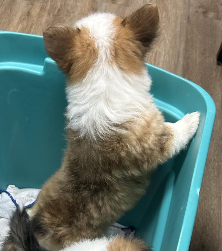 message kstamey123 about this ad This sweet boy had a great 7 week vet visit. He had first vaccines and fecal check was negative. There were no heart murmurs, no hernias, and teeth formation was very good. He is weaned from mom and eating dry food. He is AKC Champion bloodline fluffy pembroke Welch corgi. |