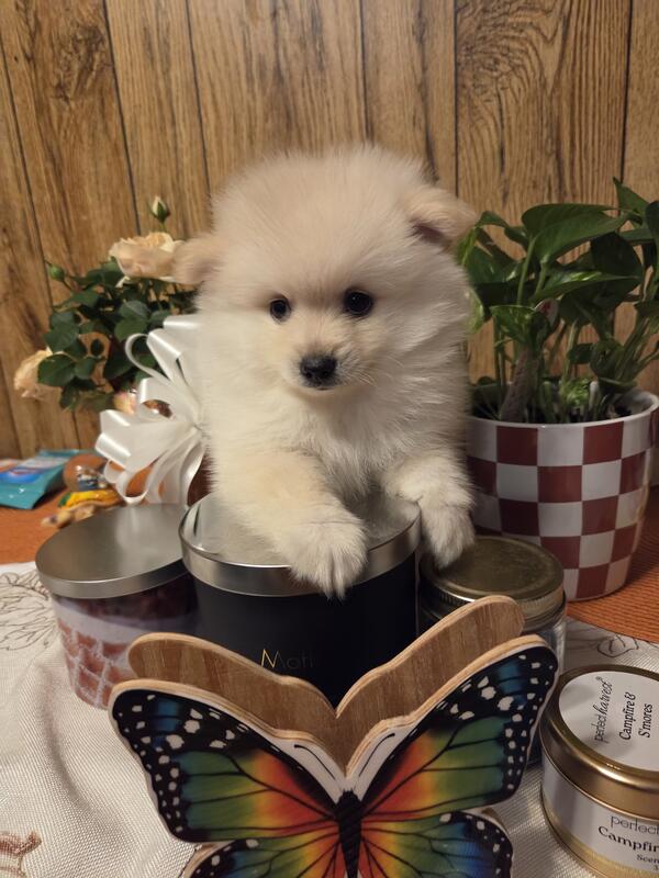 message essysue about this ad Meet Storm born August 14,2025 he looks like a little polar bear. Eyes are dark he is cream-sable. Registered CKC, he had a vet wellness check up and is healthy at 2# 3oz wormed and up to date on shots . Loves playing with his toys and loves attention is on the quieter side.He is ready for his forever home. Will keep you posted on his growth and pictures if interested please message me for more info |