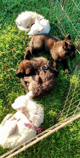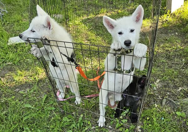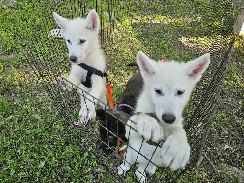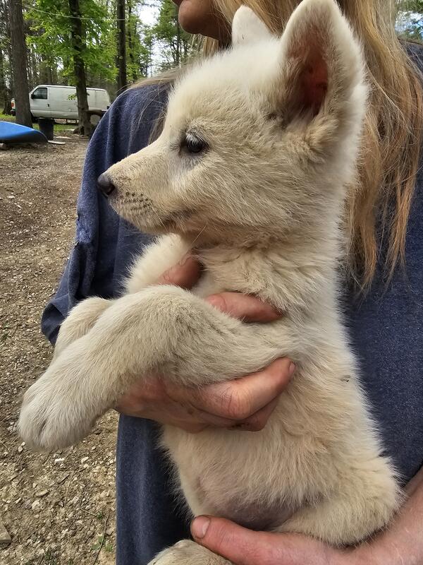 message wolfylady about this ad Born March 15. One white female still available. Hands on since birth. Have lots of pics and videos. UTD on shots and deworming. Crate trained and have begun leash training. 33+ years experience with wolfdogs. Text Gretchen at 8125859543 we are located in freedom, indiana. Have embank of last year's male 70.6% grey wolf (pictured with the aussie Also accepting potential waitlist for next year |