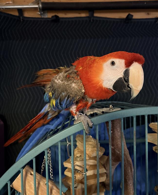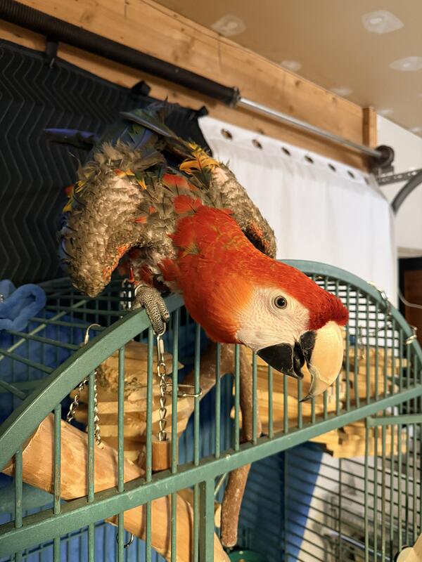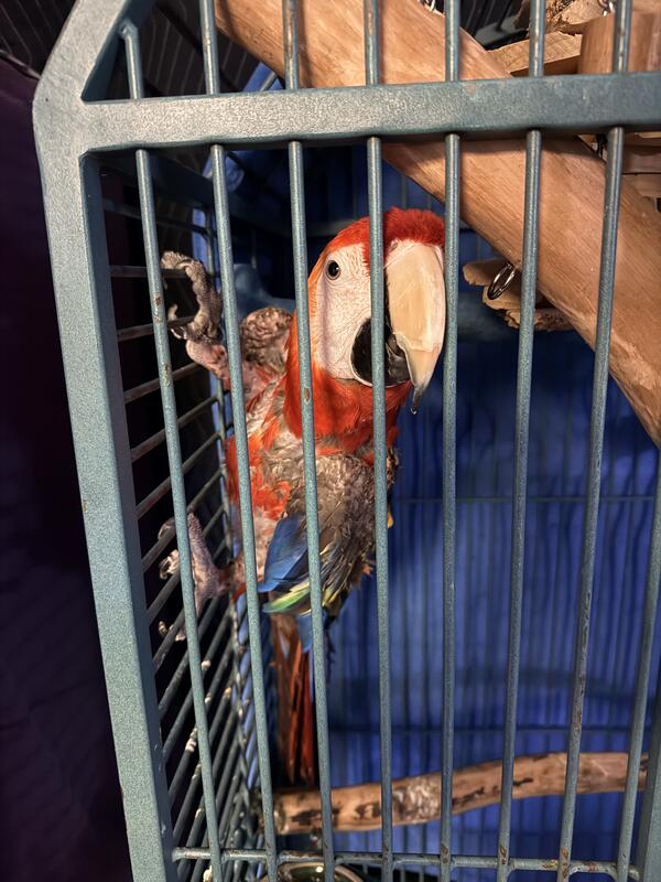 message hrtprr3105 about this ad Reduced, $1900, Large male scarlet, have DNA certificate, he is banded. He loves toys, growing back some feathers since I have had him. Talks, I got him with another bird that they were supposed to be a pair, but ended up both males. I can hold him, but as any adult scarlet, I dont trust him on my shoulder, and someone must of let him, has an attitude when I dont let him up my arm. I can meet with in reason. |