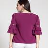 message prerana about this ad Product Highlights Product Code: 7753723 Purple solid woven regular top, has a tie-up neck, three-quarter sleeves The model (height 5'8 is wearing a size S Turn up your style with this charming three-quarter sleeve top designed by plusS. This purple piece can be styled with slick black jeans and leather boots when you're going to lunch with your friends. 100% polyester Machine-wash httpsmyntr.it/87Y9ItN |