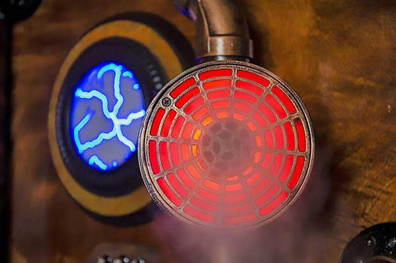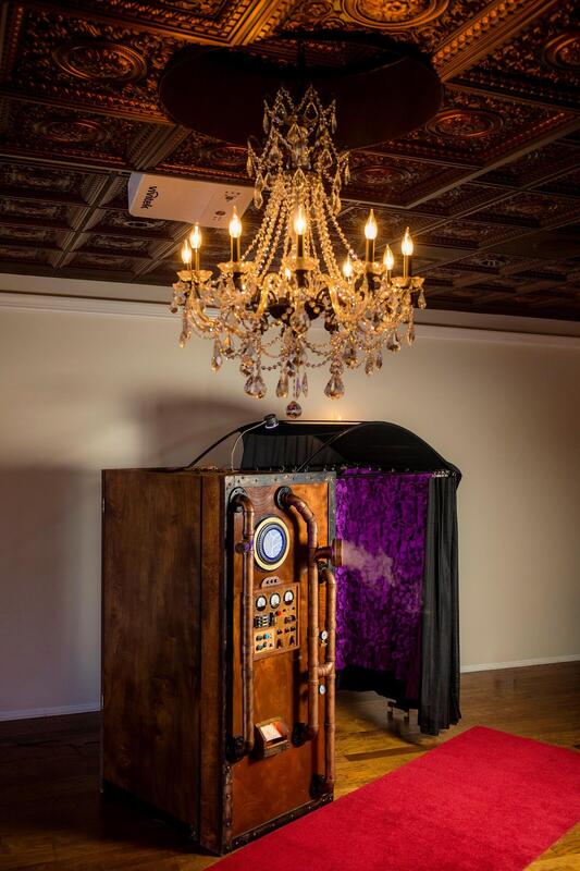 message lookingglasskc about this ad Our vintage (Victorian era) steampunk time machine is one of our favorite photo booths. We have used it for a wide range of events, from a London party for KU Medical Center to the nicest weddings. With the beautiful stained woods, bursts of steam and fun special effects it enchants everyone to come over and give it a try. It is a curtained booth which allows up to a dozen guests to get in and give it a spin. The interior curtain colors can be customized for your event. Give your party that "WOW" moment when your guests see the booth and then cant wait to use it. |