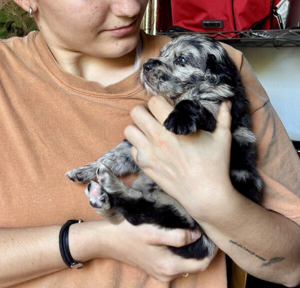 message dvdcs6522 about this ad 9 beautiful Aussie/Labrador hybrid puppies. Mom is Aussie, Labrador is Dad. Both parents have their AKC papers. Mom is Blue Merle and Dad is Chocolate. $1200 for the Merles and $1000 for all other patterns. Theyll be four weeks old on November 7th and will be ready to visit when theyre six weeks. All puppies require a 50% deposit within 6 and 8 weeks of age and are ready to go home with their humans after 8 weeks. |