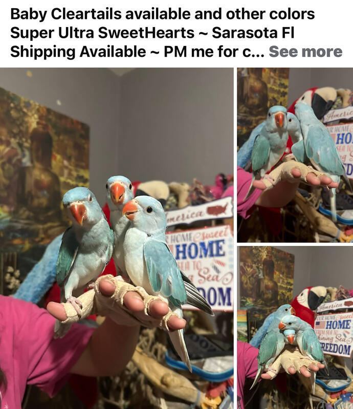 message beautifulbeaks about this ad we have several beautiful colors of baby ringneck parakeets also green cheek conures . Also Green Cheek Conure Sun Conure Mustache Parakeet Pricing is by age n mutation coloration. NO refunds -I do take payments on babys still handfeeding . I feed a Heart Health Detox diet which is really amazing n Im very proud of . Please contact me dirrectly by phone text Thanks Sherri 941-467-2542 Mustache Parakeet, s getting ready for the new season so exciting |