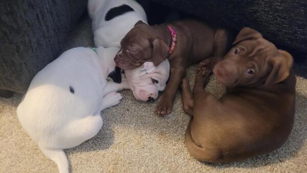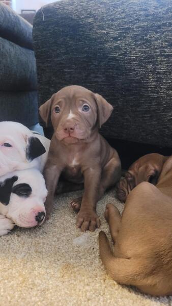 message lillycal69 about this ad Born December 6th and will be ready for valentines day! Mom is a 3 yr old Shar pei pitbull mix and dad is a 10 month old American Staffordshire terrior. Mom has a great temperment and protective of the home and family. Dad is very intelligent, eager to please and all around friendly. Both dogs raised with kids, chickens, cats and other dogs. Theyre currently on Purina pro dry puppy kibble. They spend lots of time outside of the pen playing. Theyre also doing great with using their puppy pads and have great recall! 4 Boys and 6 girls available. These puppies are going to be medium to large size and stocky. Theyll come dewormed with first set of shots. Txt for each pups bio and more pics/ videos 717 623 9410 |