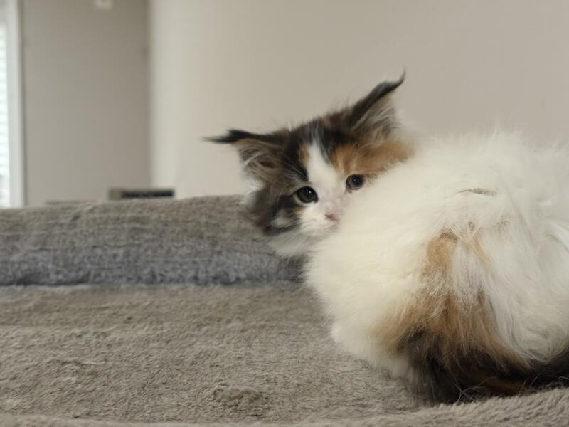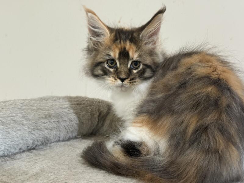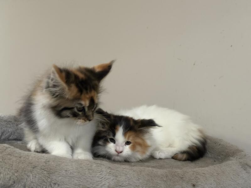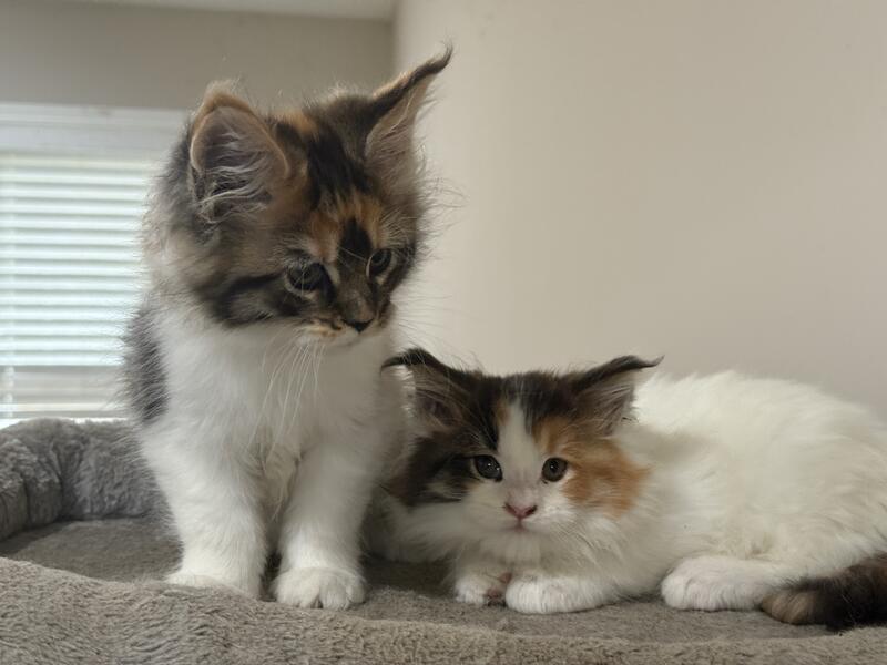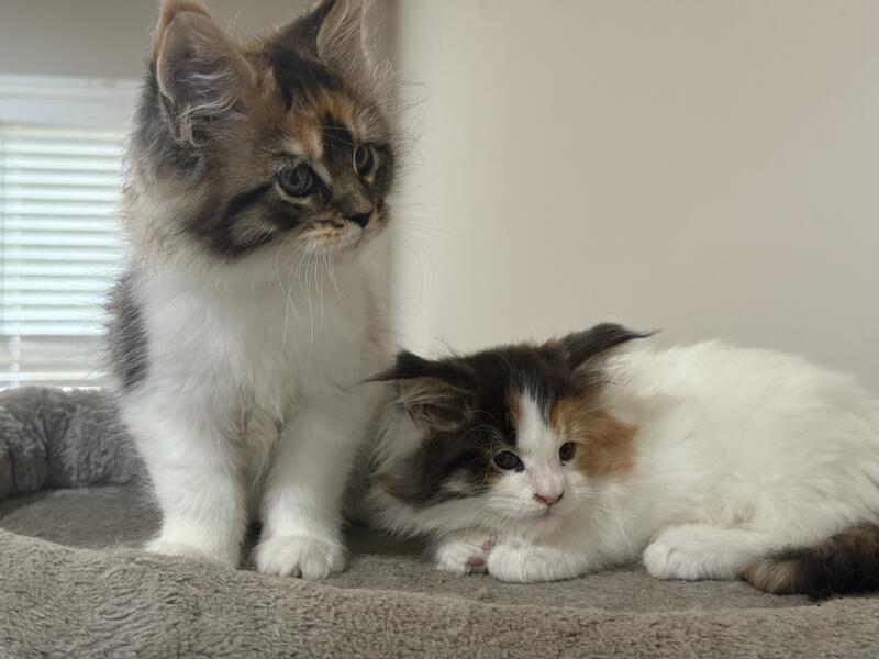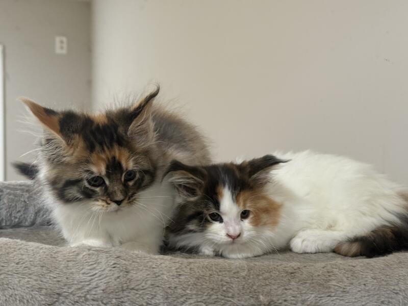 message runningwoman about this ad Large European Bloodline Two female ( pet only) Maine kittens Born August 28 , 2025. Both parents came from Europe. Large bloodline. Tica registered Worming schedule and second kitten vaccination . Very friendly and social. Beautiful Markings Pet only must be spayed |