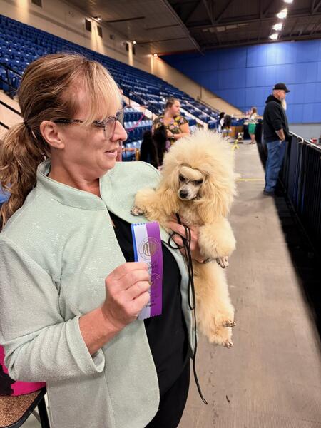 message pbwells79 about this ad My Southern Anna Belle and Champion Poodle Dance Raising the Bar Higher are proud parents of 5 sweet and beautiful babies! 3 chocolate and 1 apricot male and 1 chocolate female (which is spoken for already born Oct 22, 2025 Taking inquires only at this time. Only serious inquires please. Puppies are now 4 weeks old! They will be ready for Christmas! On a bragging note, I would like to brag on My Southern Dixie Queen! Dixie was from the Anna and Georgie Boy litter and is now starting her show career and being professionally handled by Jen Anders. Her first 5 show cluster was in Roanoke, Va this month and she did really well for a first time out in the ring. Dixie did Jen and I proud as she pranced her way around the ring, taking winners every day and 3 reserves. This little girl got plenty of compliments and turned some eyes, looking forward to seeing her go out with Jen and have fun showing! I'll be bragging on them and posting their progress on my facebook and tictoc page. It is a very exciting time for us here at My Southern Poodles. I had to post some of Dixie's baby pictures and then one of her with her handler and ribbons! Plus, she was in her show hairdo, so she looked so pretty! Dixie is not for sale, just bragging on her! (Dixie was out of My Southern Anna Belle and Poodle Dance Hey There Georgie Boy litter, so this can give you an idea of what these little boys will grow up to look like, except they will be males message pbwells79 about this ad |