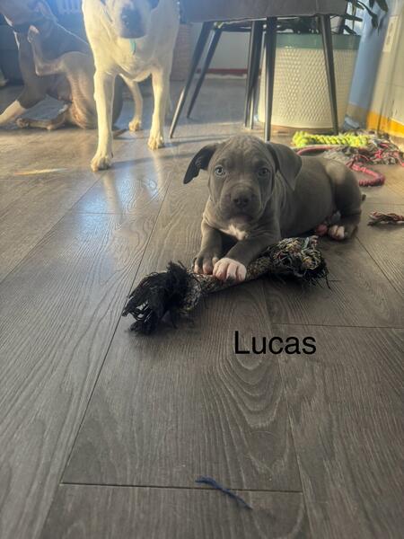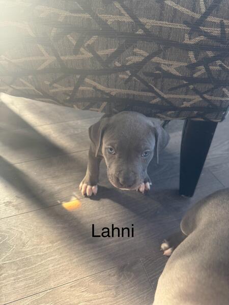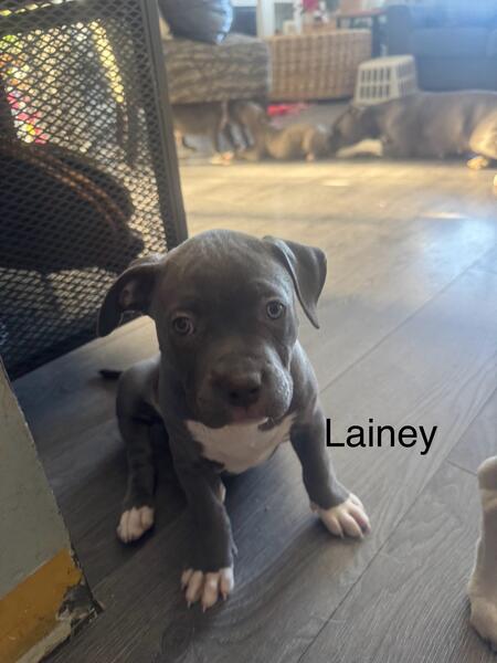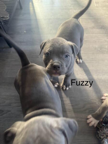 Beautiful 8 wk old Purebred blue American bullies. Come with vet check, deworming and first set of needles. Theyre ready to go!