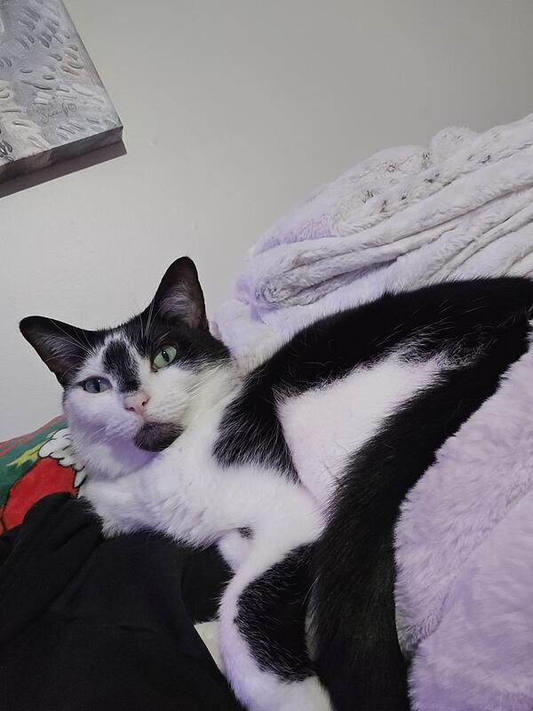6 years old, neutered, extremely social. Does great with dogs and humans. Loves pets and a lap to snuggle on.