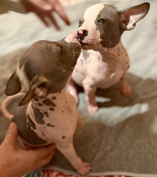 message aronzone82 about this ad Benicio Del Torro is a stunning Male Spotted Mariposa Xoloitzcuintli Pup born 09/10. Parents weigh 15lbs and 30lbs give or take. Pups will be Miniature/Intermediate stature. He also has a sister available, Carlita, which is also a stunning and unique spotted Mariposa. Pups will come home with, age appropriate vaccines, preventative deworming and a health guarantee. |