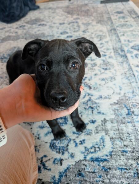 12 week old puppy looking for a good home. She is up-to-date on shots and dewormer. She is very sweet and loves people.