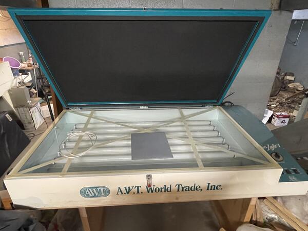 message andreavansconis about this ad AWT exposure unit is brand new, we took it out of the crate & set up but have never used it. The pipe on the back looks like it got pulled on but there is room to cut & put it back on, all of the paperwork is with it. We also have a dehumidifier, hat press for screen printing, screen printing paint & some screens. We decided to go a different route & would like some space back in our basement. The exposure unit alone is $4,500 brand new. We are asking $4,000 for everything included in this add |