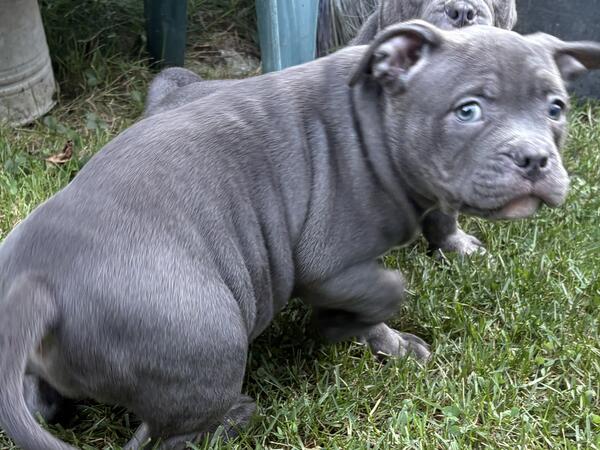 message kabluez12 about this ad ABKC reg 17wksOld Vaccinated Dewormed Up2date Ready to Go To A Responsible Loving Home Peds Ntk MonstaG,Edge,Ch Tripod Rockandruby,LouieVline Hollywood Dabz 1Pocket Blue Male with no cropped ears 1.k / 1 Pocket Blue Male With Ear Crops 1.5k PayPal Western Union Deposit $500 to lock-in pup till pickup FaceTime/ Video Chat to make pick on a pup available if buying Go To my Ig Kabullybluez12_ / YouTube Channel ACGSKAMP Check Them Out if Interested Serious Inquiries Only Call 24/7 NO TEXT Messages landline 9087773083 ask for Kay Thank You Godbless |