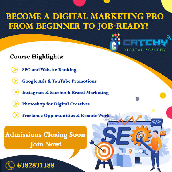 message catchy about this ad Join the Digital Marketing Course at Catchy Digital Academy Gandhipuram New batch starting soon! Specifically useful for business owners Learn how to run ads, grow on social media & rank on Google Step-by-step practical sessions Online & Offline Modes Available Certification & Support Included WhatsApp BUSINESS to 63828 31388 |