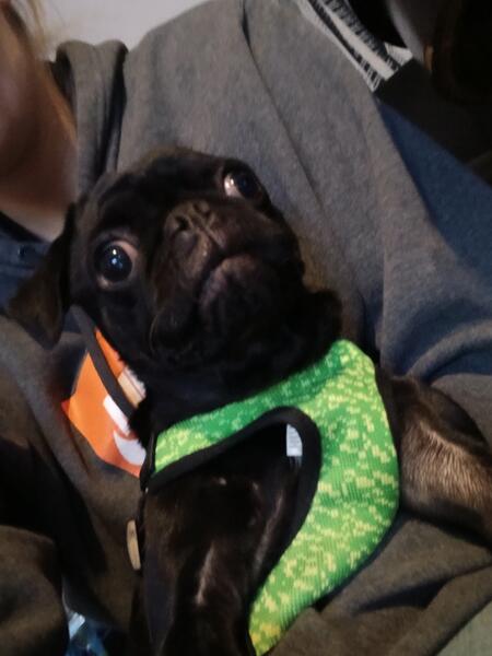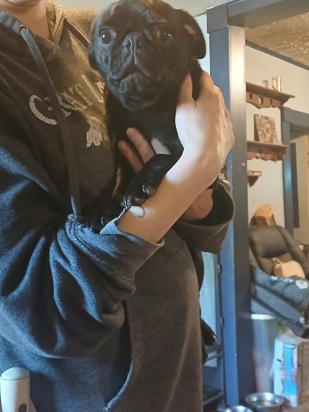 message jessylyn about this ad I have a pug who is about a year old very friendly and loves attention I just dont have the time to give her the attention she needs as I now have a newborn born and she is alway trying to lay on top of her. |