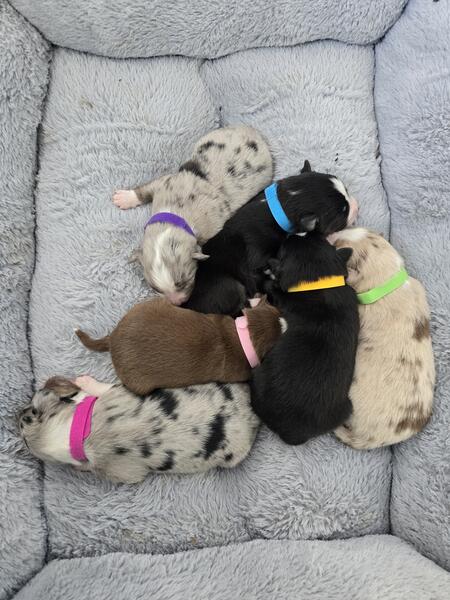 message juliahilty90 about this ad Toy Australian shepherd puppies! They will be ready to go home for Christmas! They have been around small children since birth. They will be up to date on age appropriate vaccination and deworming treatments! Located in SouthWhitleyIndiana. We are willing to meet in Coldwater Michigan Call or text me at 517-227-805 2 blue merle females 1,500 each 1 red merle female 1,500 1 red tri female 1,200 1 black tri female 1,000 1 black tri male 1,000 |
