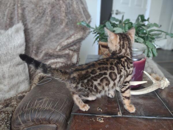 message hopefullyb about this ad TICA registered Bengals Male and female available kittens have been vet checked first shots and dewormed ready to go date of birth August 2nd 2025 located around Lynchburg Virginia area Brown's 1800 charcoals 1600 |