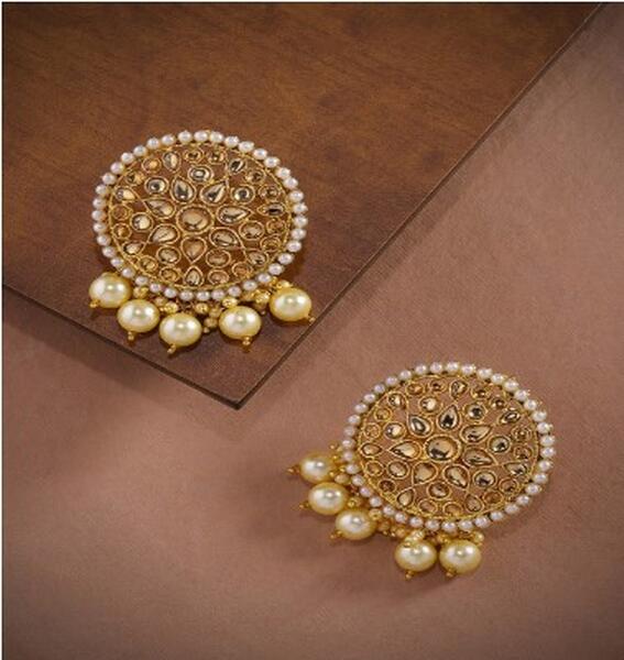 message rohinee about this ad Product Code: 11763598 Gold-Plated Circular Earrings, has pearls Secured with a post and back Earring Length: 5.6 cm From Zaveri Pearls, these current earrings are the latest and greatest in jewellery. Wear this gold pair with slick black jeans and a pretty top for your next coffee date. Material: Alloy Stone Type: Pearls Wipe your jewellery with a soft cloth after every use httpsmyntr.it/8abkAeY |