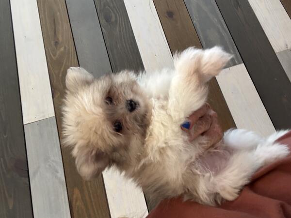 message pandorabull about this ad Too adorable balls of fluff. The black is a girl and the sable pied Merle is a boy. Both are super sweet, playful, and cuddly. The girl is the bigger one, she will probably be about 10 pounds full grown. The boy is much smaller and will probably only be 5 pounds full grown. You are welcome to come and meet them in DeLeon Springs Florida |