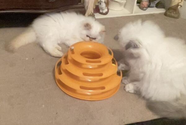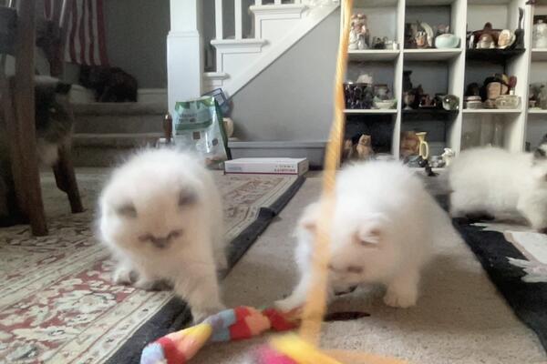 message altrom2010 about this ad 2 adorable himalayan kittens. 1 flame points male,1 blue point female. Very intelligent, active, playful, healthy, love to race around but are well behaved. The blue point is more reserved and "a talker The blue point is a dominant female kitten & doesn't think twice about wrestling with her brother. The flame point point is extra cuddly. Already had their 3rd monthly shower. With come with their pedigree and a variety of things they are used to. They are so intelligent one will even pull the chase toy on their own for the others to chase. Mother is a sweet tempered tortie point. Father is a very dominant seal point both CFF registered. Grandfather and others in the pedigree are cat show winners. |