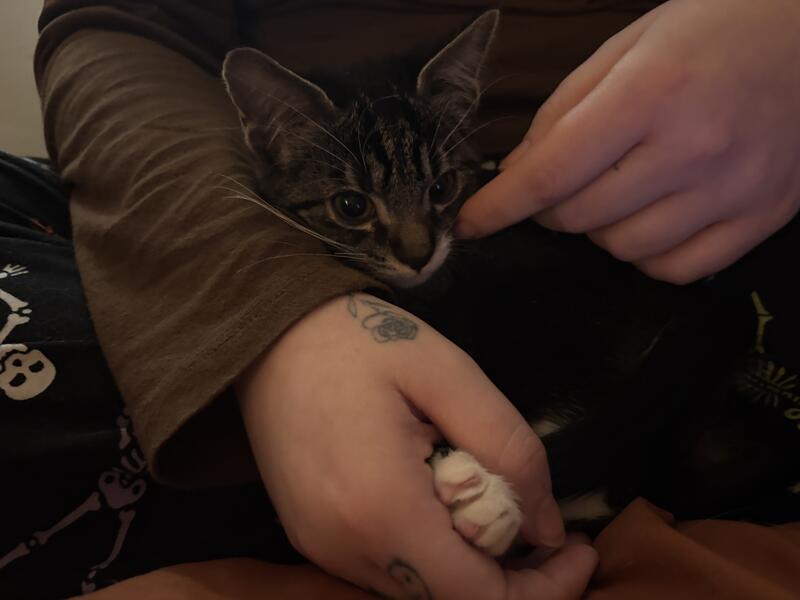 message meow444 about this ad My boyfriend and I found this kitten a week ago before the snow storm all alone so we took him in to get him off the street, we cannot keep him due to our cats not getting along with him but hes a very good kitten, potty trained, eats dry/wet food and drinks water and very friendly and loves people. He just needs to go to a good home please ONLY message if interested. |
