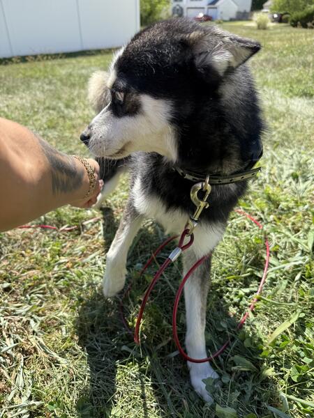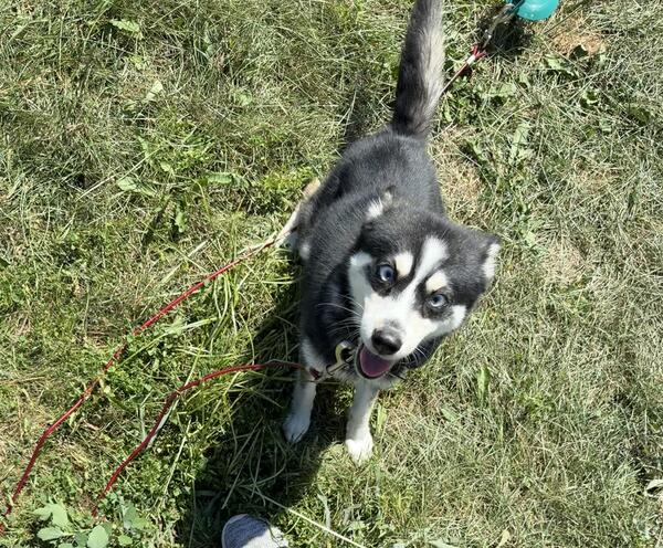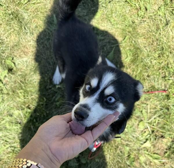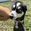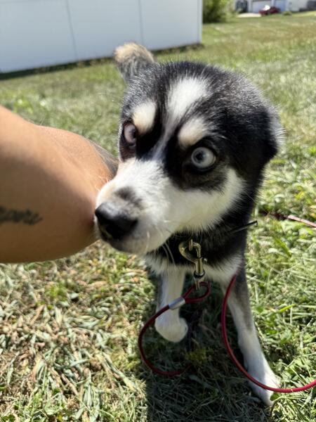 1 year pomsky. She has a bunch of energy and loves to be loved on. 12 pounds! Shots up to date and microchipped.