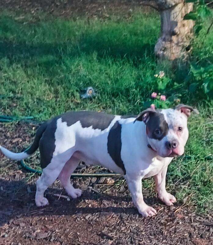 message solohorse about this ad This standard / classic boy has blue piebald markings with ticking and a stand out split blue eye-patch. Both parents are Embark clear and 100% American Bully. Father is Ch Zhuko Blue Spirit and 100% razors edge bloodline standard blue tri color. His bloodline goes back to founding of breed with dogs such as BluePrides Pumba and Cairo, Remembering Cairo with dogs from Kaozbullies and BluePride lines . Mother is a classic girl, our Nimbus was single registered from gottyline and razors edge, she passed OFA testing of hips, elbows, cardiac and patella and she is Embark clear too. Mom is blue piebald tri carrier. This boy has a sweet friendly personality and loves to play, He loves to play catch and fetch and loves to go for walks on a leash. He can chase drone for exercise and has some good high jumps so we will do athletic games like weight pull or lure coursing. He has zero temperament issues and zero health issues and no breathing issues. He has passed cardiac so hips will be done after New Years. If you want health and athleticism he can add that. Stud fee will be low for intro so i can see what he can do so $500 or pup back from approved female since he has never been bred yet. Female must be registered UKC American Bully or ABR. Female cannot have 2 copies of piebald because too much white one copy piebald is fine . If Female is health tested I will give discount. Videos available on request. Embark available on request. We are located in Arizona 18 inches tall 80 pounds 23 inch head so far. UKC and ABR OFA cardiac normal OFA patellas normal Embark clear EmEm KBky atat Ssp, BB, dd, NN II Rr IGF1 is NI ( medium muzzle is AA short Genetically Ghost Tri per DNA testing his tri is hidden. Ticking / Roaning gene ig inzaratha_superstes_guard message solohorse about this ad |