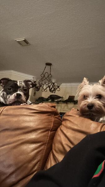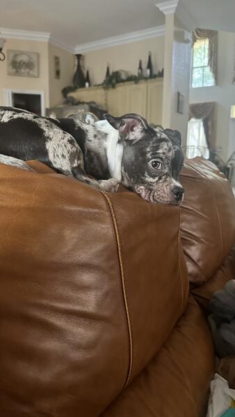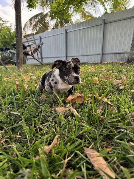 message portroyalkennelss about this ad Tri color Oreo Merle American bully ( black white grey) Birthday 12/23/23 ( has lineage data) pet paperwork. Name Split (tried other names she like hers) Temperament nanny dog Weight 23lbs Gender female( never bred, pet only, not spaded) Reason for re homing single mother unexpectedly had twins, she no longer had the same time for a young vibrant loving pup despite pup adapting to the babys well such as guarding the room and alerting to crys. House mate 11 year old neutered yorkie boy Loving home needed serious inquiries only |