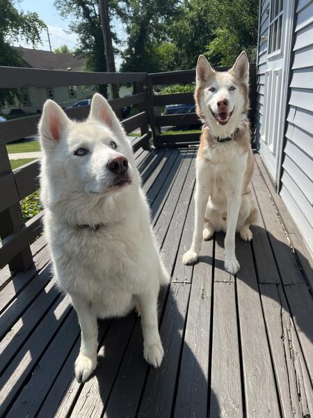 message meganbuchholz about this ad Rehoming 2 adult male pure bred Siberian huskies, $50 for both. They come with whatever dog food I have left at the time, all toys and bones and treats, leashes, 2 XXL wire foldable kennels. I have a 2 dog training collar system that I bought new and is up for negotiation. They are both house trained and neutered and chipped. Good dogs as long as theres no small children that dont understand how to be gentle. Romeo (brown and white 6yrs old) likes to do his own thing for the most part and Yeti (white 5.5yrs old) kinda follows but sometimes feels like being an attention seeker. Please text me with questions 32ox76ox1515 |