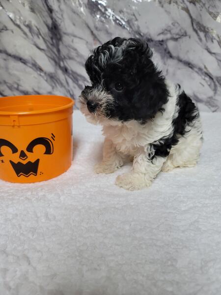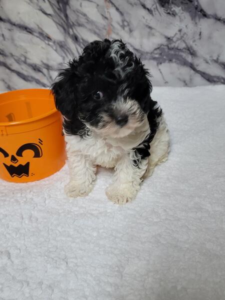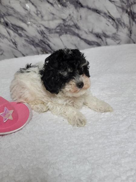 message gvettn67 about this ad CKC registered Toy Parti poodle puppies. One male and one female are black and white parti poodles and one male is a Black, brown and white tri-color poodle. The little girl is currently charting via puppyweights.com to be barely 6 pounds when grown. The male tri-color is currently charting to be 7.4 pounds when grown and the male black and white parti is currently charting to be 8 lb 12 ounces when grown. Their tails have been docked and dew claws removed by the veterinarian. They have been wormed and have their first vaccination. They will come with a 6 month genetic health guarantee. They have been raised in our home with other dogs and kids. They are ready now to find her new forever families. THE BOYS ARE 600 EACH AND THE GIRL IS 800 615-500-4208 No SCAMS. I will not send any codes. |