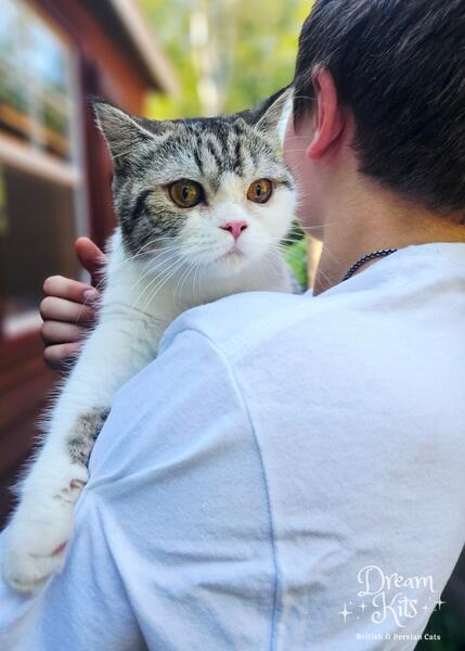 British Shorthair Silver Tabby female Priska; very sweet, healthy, well socialized.