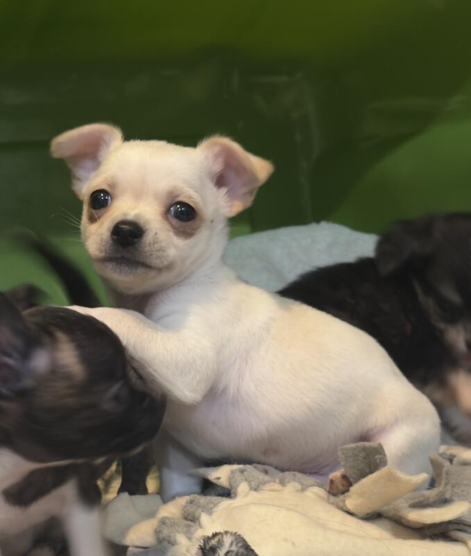 message haileypickle about this ad Born 9/29/25 short haired cream colored male chihuahua. Ready to go November 24th at 8 weeks old. 700$ Mom is a long haired phantom Merle with Russian bloodlines. Dad is a short coat brindle. Both on site. Located in Fowlerville. Text 810/341/4448 for inquiry |