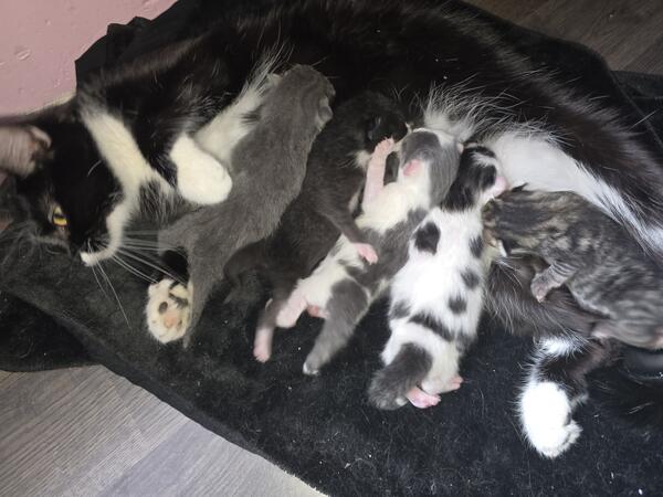 Dad was full blooded spynx. Babies carrie spnyx and Polydactyly genes. Havana il
