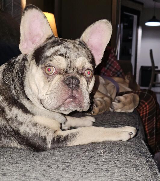 message heartfeltdanes about this ad 1-year old female french bulldog, merle tan point. Both parents are OFA tested. She is AKC registered. Very sweet girl, great with children and other dogs and cats. 100% house trained and walks well on a leash. Can come with breeding rights for an additional $1000. |
