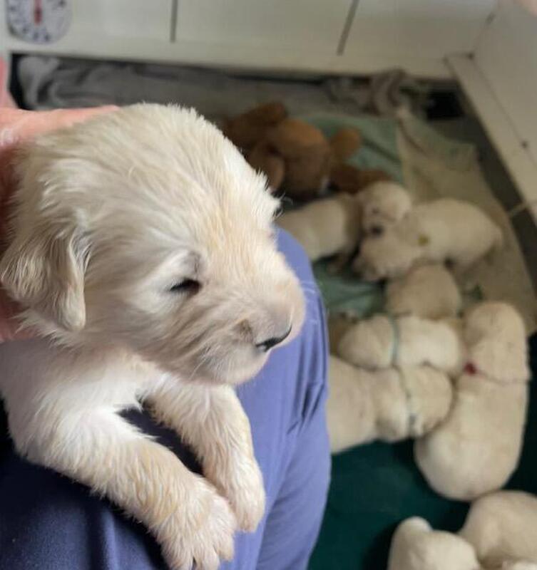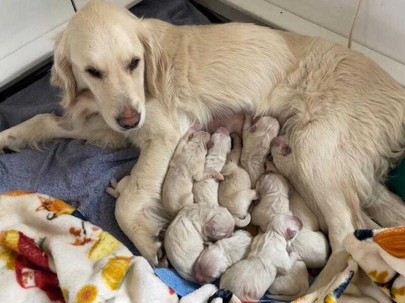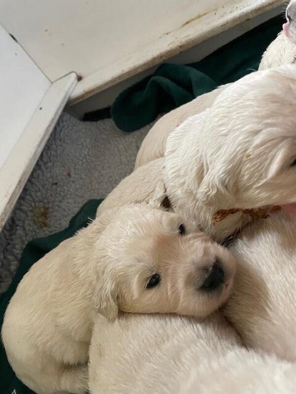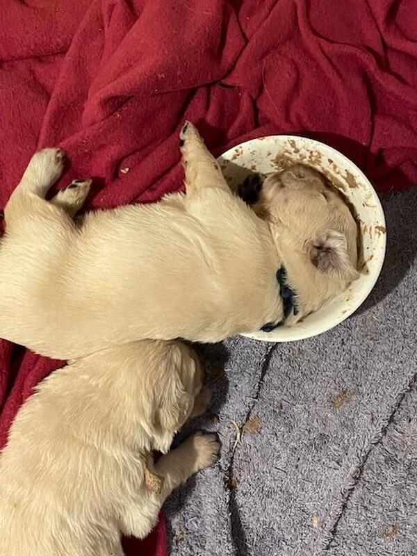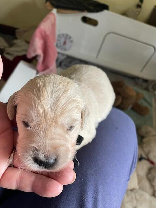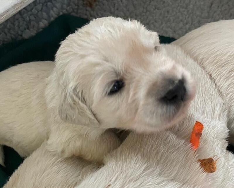 message kaczara13 about this ad I will breed Lucy in spring April? same sire as last year, Schmuckers Trevor. ,taking reserves . My guess is breeding in late April, due/born in mid-late June then leave at 8 weeks late August. possibly earlier but I won't know til she cycles. in April as my vet said to me at vet exam for last litter with Trevor: "this is an OUTSTANDING litter and it is, consistent color, temperament blocky heads. and a great mom Trevor is full Eng ( European bred) and Lucy is 1/2 English the first puppy photos are at 3 wks. a couple cream/white but many will be cream to lt gold! I expect Lucy litter to have more cream Lucy is one half Eng cream The 5th photo is Lucy on left blond and mom ceili on Right taken in summer Lucys gr Sire is Laurell kennel has AKC CH and all on his side Lucy has great Penn Hip x rays .31 and .32 This litter is limited registration I occasionally offer full AKC reg. to "experienced breeders" only, after main OFA s and age 2, for additional $500 To reserve a puppy email me here or on FB, we discuss your experience or none, etc Then a phone call I have an application, no worry its to help me know what you need then you will send $300 deposit (non refundable unless I do not have a puppy for you) to hold your reserve, balance due in cash on pickup day RESERVED 2026 there are several repeat buyers interested I will do a personality test Volhard, and a new one I found. it helps see the assertive pups from relaxed. in general goldens are relaxed but small females can be the leader This will help me choose the right puppy for you! its not based on "pick order" but on your needs ( ie small children, show, hunting, therapy dog? etc) If enough pups? I can have a 1st pick male and female + $300 depending on your needs. (full reg. is possible but not included to experienced breeders only after full ofa testing) AKC limited registration, no breeding rights ,pedigree scented cloth food, vet check, dewormed ,nails trimmed I do not have dew claws removed, first set of vaccinations and a lifetime of help and advice. I do a lot of training with my dogs once I .breed I stop taking them to classes Lucy has AKC Novice tricks title, CGC title and CGC Adv community and did really well in first agility but I cant do it with my hip/feet issues! Remember when looking at pups you really need all the tests I provide especially the top 4 (hips, elbows, heart and eyes) OFA clearances not just hips . all large breed dogs need hips cleared before breeding, goldens need the main 4 that I do You can see me on FB Kaczara farm Goldens message kaczara13 about this ad |