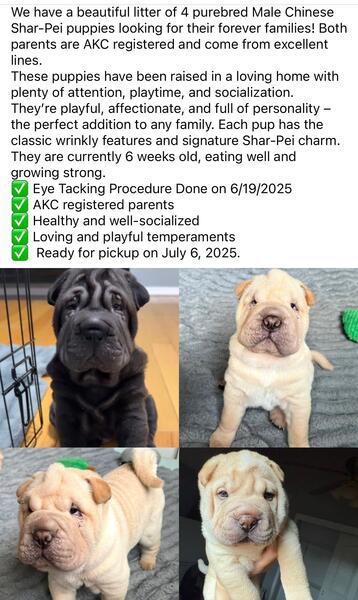 message ejohnson3190 about this ad AKC registered and come from excellent lines. These puppies have been raised in a loving home with plenty of attention, playtime and socialization. They are playful, affectionate and full of personality. They are currently 7 weeks old, eating well and growing strong: Eye tacking procedure done on 6/19/25, AKC registered parents, healthy and well socialized, |