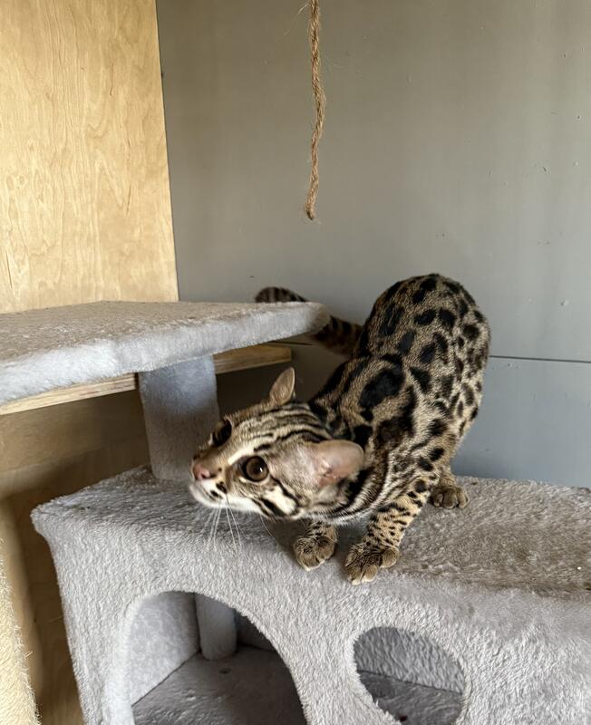 message trwells07 about this ad I have a proven breeding male just over a year old. Has a calm demeanor. Food motivated. Can be petted. Cannot be held. Eats raw. Will go to only an approved breeding program. Will breed bengal females. Message for more details! |