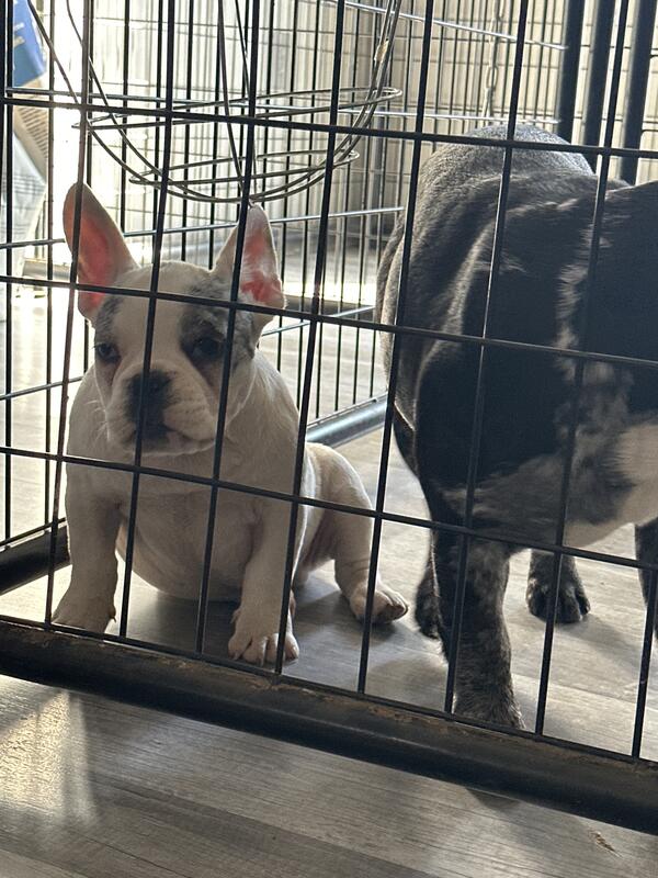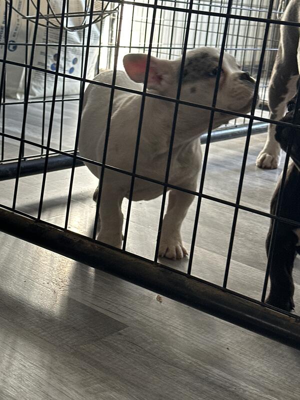 message jayandaj about this ad 2 male pups left mom is the black merle frenchi in the picture and dad is the smallest american bully i got ! this is a accident litter but the pups are fully healthy and fully function able with full tails updated on shots and dewormer |