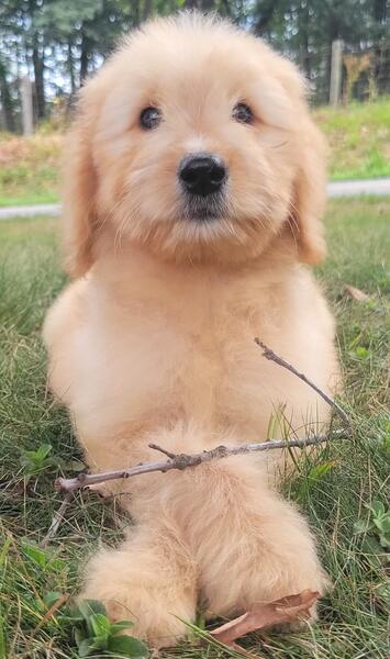 message ps1611 about this ad Gorgeous female Goldendoodle. Mocha, ceam, & strawberry highlighted teddy bear coat. Excellent temperment. Our pups are wonderful candidates for therapy, emotional support, or service dogs & are lovely additions to the family. Princess is sweet, loving, joyful, happy, easy going, content, intelligent, obedient, & calming & will fall asleep upside-down in your arms. This little one is full of joy! She loves to snuggle & give hugs. Wonderful with children, adults, & animals. Crate & potty trained. Up-to-date on vaccinations & deworming. Her Go Home bag includes a sample of her food, treats, toys, a velvet puppy collar, & health records. Text (540)820-9096 |