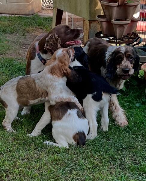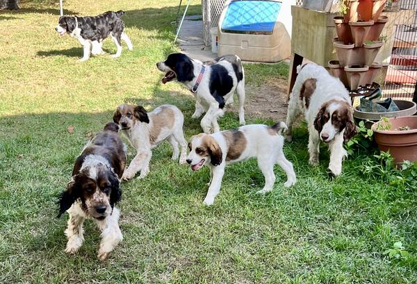 message springersrusreluskbl about this ad We only have 1 gorgeous female left she is liver/white born 6/25/25. Had 1 & 2 nd and 3 rd set of shots, plus heart guard for 10\25 dewormed tails cropped declaws removed, excellent vet check up, already to find lovely caring families. We have parents of pups dam Blue angel wings bl wh tri. and my sons springer liver white roan Diesel, grandparents Luna River, bl&wh/ & Remington liver/white tri on site, AKC REGISTERED fun loving crate trained, sleeping all night, calm pup, potty trained, very social, love children and other pets or animals she has met. |