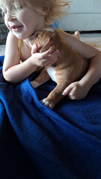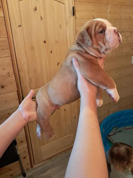 message wigglebutts83 about this ad I have 2 boys and 3 girls left They are aca Registered Victorian bulldogs. Will be utd on shots etc 8 weeks old May 22nd. Boston mountain bulldogs On Facebook |
