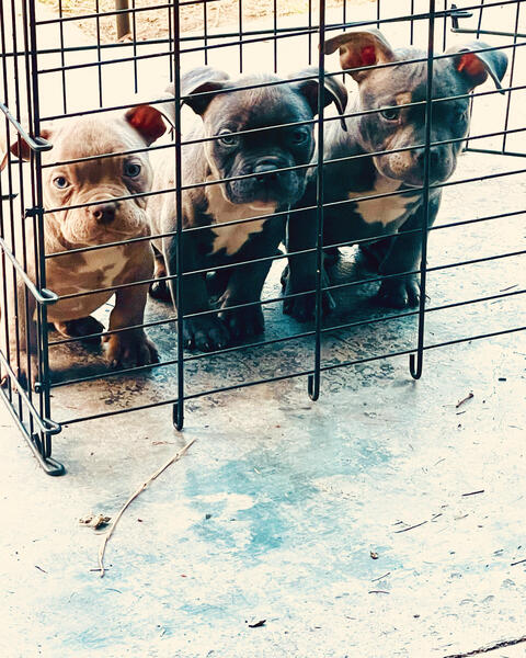 message trfsgmlcfpg about this ad Hello I have 3 3 month micro American bully puppies for rehoming one female two males one is a lilac tri male and one blue male and the other is a blue tri female. They have they first set of shots and dewormed Im just waiting on their paperwork to come in the mail they are abr registered I own both parents and have them here in my kennel. 3k for the lilac male obo 2k obo for blue male and 2.5k for the blue tri female obo willing to do pet only specials also if for information please text me These are roddy ricch from swaggerville bullies grand kids all of them have full tails 310-985-4739 3 one 0 nine 8 five 4 Seven 3 nine |