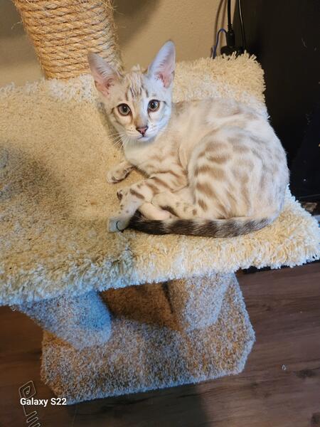 message sjmtclfjzos about this ad have 2 girls 1 blue rosettes who is almost 2 weaned her litter 3 weeks ago looking forva stud soon for her other is my Snow Lynx who is only 9 months now so looking for spring 26 . Not picky about the blue who she studs with but my snow i would live him to either be snow or carry snow her genetic is coming next week. |
