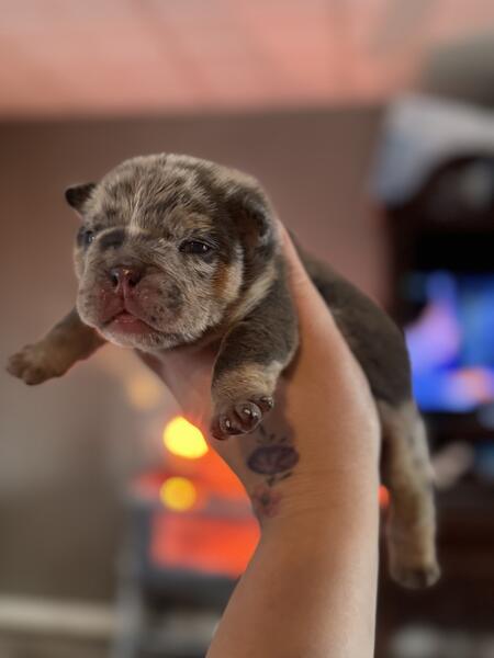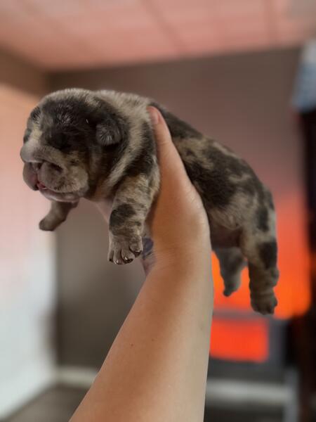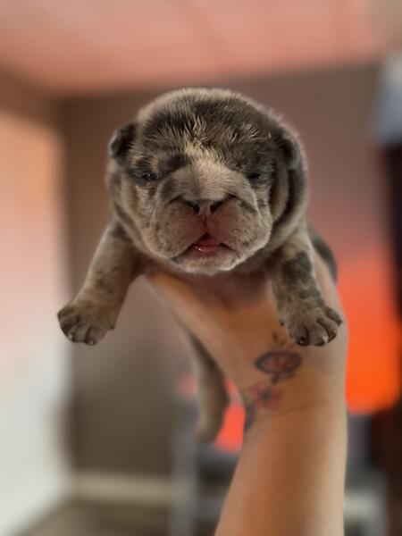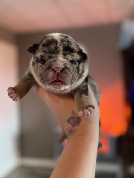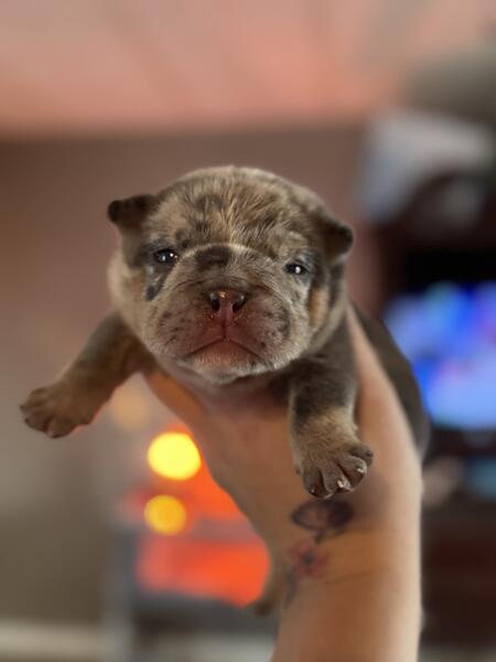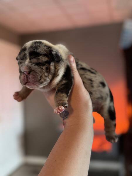 message hcb20 about this ad 2 weeks old female English bulldog puppies Will come utd on shots and vet clearance Ready for a new home 12/22! Great potential studs for any program! Price listed is full akc. Happy to FaceTime Message for more info Pet price is $4500 no breeding rights |